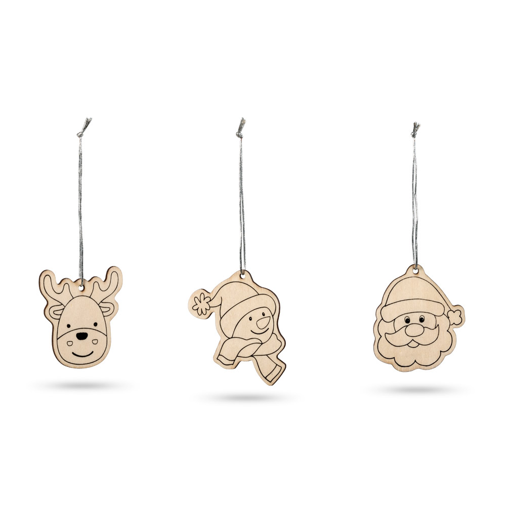 WINDHAM. Zestaw do kolorowania to wyjątkowa propozycja dla wszystkich, którzy szukają kreatywnego sposobu na spędzenie czasu oraz dekorowanie wnętrz w niepowtarzalny sposób. Zawartość tego zestawu składa się z trzech drewnianych dekoracji o świątecznych motywach, które można samodzielnie ozdobić za pomocą dołączonych czterech kolorowych kredek. Każdy z elementów wyposażony jest w praktyczne wstążki, dzięki czemu gotowe dzieła można zawiesić na choince czy w innym widocznym miejscu w domu.